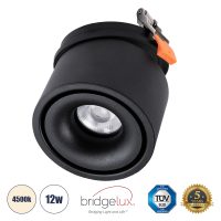GLOBOSTAR® OMEGA-R 60296 Χωνευτό Κινούμενο Downlight Σποτ LED 12W 1560lm 36° AC 220-240V IP20 Φυσικό Λευκό 4500K – Bridgelux COB Chip & TÜV SÜD Driver – Μαύρο Ματ – Μ10 x Π10 x Υ8.2cm / Q9cm – 5 Χρόνια Εγγύηση