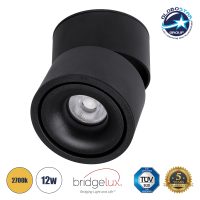 GLOBOSTAR® OMEGA-S 60301 Κινούμενο Downlight Σποτ LED 12W 1500lm 36° AC 220-240V IP20 Θερμό Λευκό 2700K – Bridgelux COB Chip & TÜV SÜD Driver – Μαύρο Ματ – Μ10 x Π10 x Υ10.5cm – 5 Χρόνια Εγγύηση