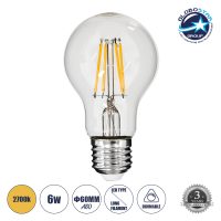GLOBOSTAR® GLOBE 99036 Λάμπα E27 A60 LED 6W 550lm 360° AC 220-240V IP20 Ultra Θερμό Λευκό 2200K Dimmable – Long Filament Chip – Μελί – Μ6 x Π6 x Υ10.5cm – 3 Χρόνια Εγγύηση