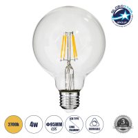 GLOBOSTAR® BUBBLE 99012 Λάμπα E27 G125 LED 4W 400lm 360° AC 220-240V IP20 Θερμό Λευκό 2700K Dimmable – Long Filament Chip – Διάφανο – Μ12.5 x Π12.5 x Υ18cm – 3 Χρόνια Εγγύηση