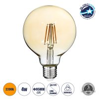 GLOBOSTAR® BUBBLE 99039 Λάμπα E27 G95 LED 4W 350lm 360° AC 220-240V IP20 Ultra Θερμό Λευκό 2200K Dimmable – Long Filament Chip – Μελί – Μ9.5 x Π9.5 x Υ13.7cm – 3 Χρόνια Εγγύηση