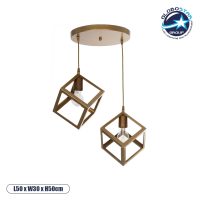 GLOBOSTAR® DISE 201-0056 Μοντέρνο Κρεμαστό Φωτιστικό Οροφής με Ντουί 2 x E27 AC 220-240V IP20 – Χρυσό – Μ50 x Π30 x Υ50cm