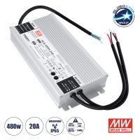 GLOBOSTAR® MEANWELL-HLG480H-24A 90795 Τροφοδοτικό/Μετασχηματιστής Class I SELV 480W 20A AC 220-240V σε DC 24V Αδιάβροχο IP65 – Ρυθμιζόμενo από DC 20.4V έως DC 25.2V – Ασημί – Μ26.2 x Π12.5 x Υ4.4cm – 3 Χρόνια Εγγύηση