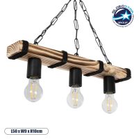 GLOBOSTAR® LUMA 201-0012 Vintage Κρεμαστό Φωτιστικό Οροφής με Ντουί 3 x E27 AC 220-240V IP20 – Καφέ & Μπεζ – Μ55 x Π18 x Υ65cm