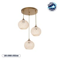 GLOBOSTAR® ILLUMIO 201-0027 Vintage Κρεμαστό Φωτιστικό Οροφής με Ντουί 3 x E27 AC 220-240V IP20 – Χρυσό & Μπεζ – Μ40 x Π40 x Υ53cm