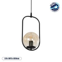 GLOBOSTAR® PIAGE 206-0036 Μοντέρνο Κρεμαστό Φωτιστικό Οροφής με Ντουί 1 x E27 AC 220-240V IP20 – Μαύρο Φιμέ – Μ18 x Π18 x Υ31cm