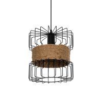 GLOBOSTAR® GLARO 201-0112 Vintage Κρεμαστό Φωτιστικό Οροφής με Ντουί 1 x E27 AC 220-240V IP20 – Μπεζ & Μαύρο – Μ32 x Π32 x Υ30cm