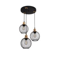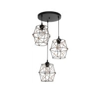GLOBOSTAR® DAZLA 201-0024 Vintage Κρεμαστό Φωτιστικό Οροφής με Ντουί 3 x E27 AC 220-240V IP20 – Μαύρο – Μ47 x Π47 x Υ60cm