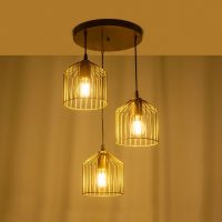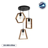 GLOBOSTAR® RADIANT 201-0097 Vintage Κρεμαστό Φωτιστικό Οροφής με Ντουί 3 x E27 AC 220-240V IP20 – Μαύρο & Χρυσό – Μ38 x Π38 x Υ50cm