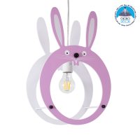GLOBOSTAR® BUNNY 61577 Παιδικό Κρεμαστό Φωτιστικό Οροφής με Ντουί 1 x E27 AC 220-240V IP20 – Ροζ & Λευκό – Μ27.2 x Π15.5 x Υ40cm