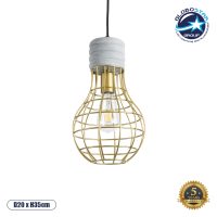 GLOBOSTAR® DURANT 01322 Μοντέρνο Κρεμαστό Φωτιστικό Οροφής με Ντουί 1 x E27 AC 220-240V IP20 – Γκρι & Χρυσό – Μ12 x Π12 x Υ40cm