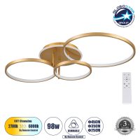 GLOBOSTAR® NEMESIS 61110 Μοντέρνο Φωτιστικό Οροφής LED 98W 11858lm 360° AC 220-240V IP20 Ρυθμιζόμενο Λευκό CCT με Χειριστήριο από 2700K έως 6000K Dimmable – Lumileds SMD Chip – Χρυσό Βούρτσας – Μ89 x Π60 x Υ19cm – 3 Χρόνια Εγγύηση