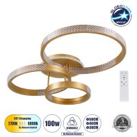 GLOBOSTAR® DIAMOND 61116 Μοντέρνο Φωτιστικό Οροφής LED 100W 12123lm 360° AC 220-240V IP20 Ρυθμιζόμενο Λευκό CCT με Χειριστήριο από 2700K έως 6000K Dimmable – Lumileds SMD Chip – Χρυσό Βούρτσας – Μ80 x Π50 x Υ20cm – 3 Χρόνια Εγγύηση