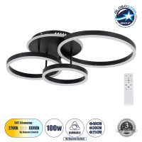 GLOBOSTAR® NEMESIS 61108 Μοντέρνο Φωτιστικό Οροφής LED 98W 11858lm 360° AC 220-240V IP20 Ρυθμιζόμενο Λευκό CCT με Χειριστήριο από 2700K έως 6000K Dimmable – Lumileds SMD Chip – Μαύρο Ματ – Μ89 x Π60 x Υ19cm – 3 Χρόνια Εγγύηση