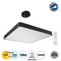 GLOBOSTAR® KAMALA 61210-P Μοντέρνο Κρεμαστό Φωτιστικό Οροφής LED 100W 11020lm 120° AC 220-240V IP20 Ρυθμιζόμενο Λευκό CCT με Χειριστήριο από 2700K έως 6000K Dimmable – Lumileds SMD Chip – Μαύρο Ματ – Μ80 x Π80 x Υ8cm – 3 Χρόνια Εγγύηση