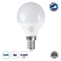 GLOBOSTAR® SPHERE 60013 Λάμπα E14 G45 LED 4W 388lm 260° AC 220-240V IP20 Φυσικό Λευκό 4500K – Lumileds SMD Chip – Λευκό Γαλακτερό – Μ4.5 x Π4.5 x Υ7.8cm – 3 Χρόνια Εγγύηση