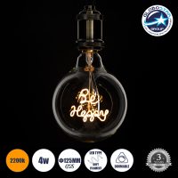 GLOBOSTAR® BE HAPPY 99258 Λάμπα E27 G125 LED 4W 340lm 360° AC 220-240V IP20 Ultra Θερμό Λευκό 2200K Dimmable – Filament Chip – Διάφανο – Μ12.5 x Π12.5 x Υ18cm – 3 Χρόνια Εγγύηση