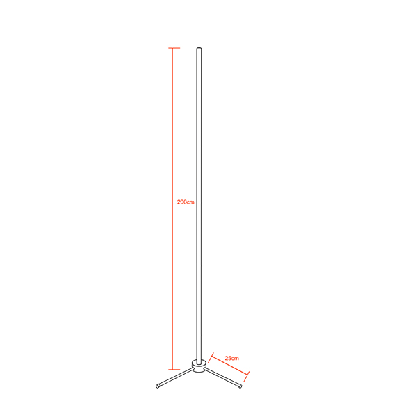 Μοντέρνο Minimal Επιδαπέδιο Μαύρο Φωτιστικό 200cm LED 32 Watt με Ασύρματο Χειριστήριο RF & Dimmer Θερμό Λευκό 3000k GloboStar ALIEN Design GLOBO-200-3