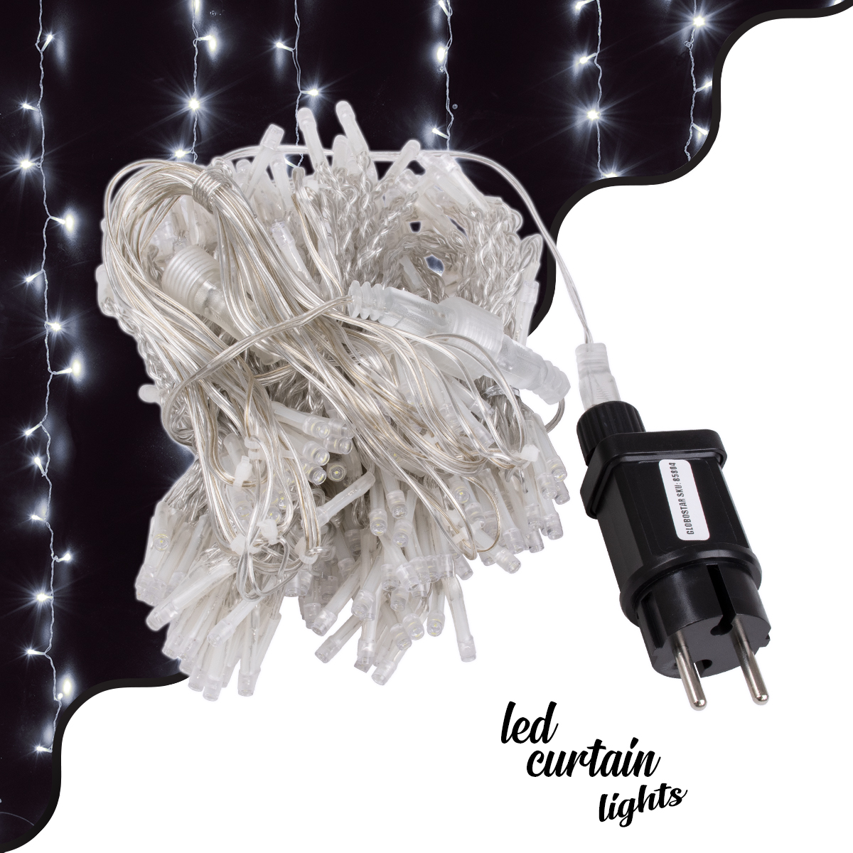85804 Διακοσμητική Κουρτίνα 3 x 3 Μέτρα με Controller 8 Προγραμμάτων Φωτισμού – Επεκτεινόμενη 300 LED 6W AC 230V με Διάφανο Καλώδιο & Πρίζα Schuko Αδιάβροχη IP44 Ψυχρό Λευκό 6000K Μ3 x Υ3m