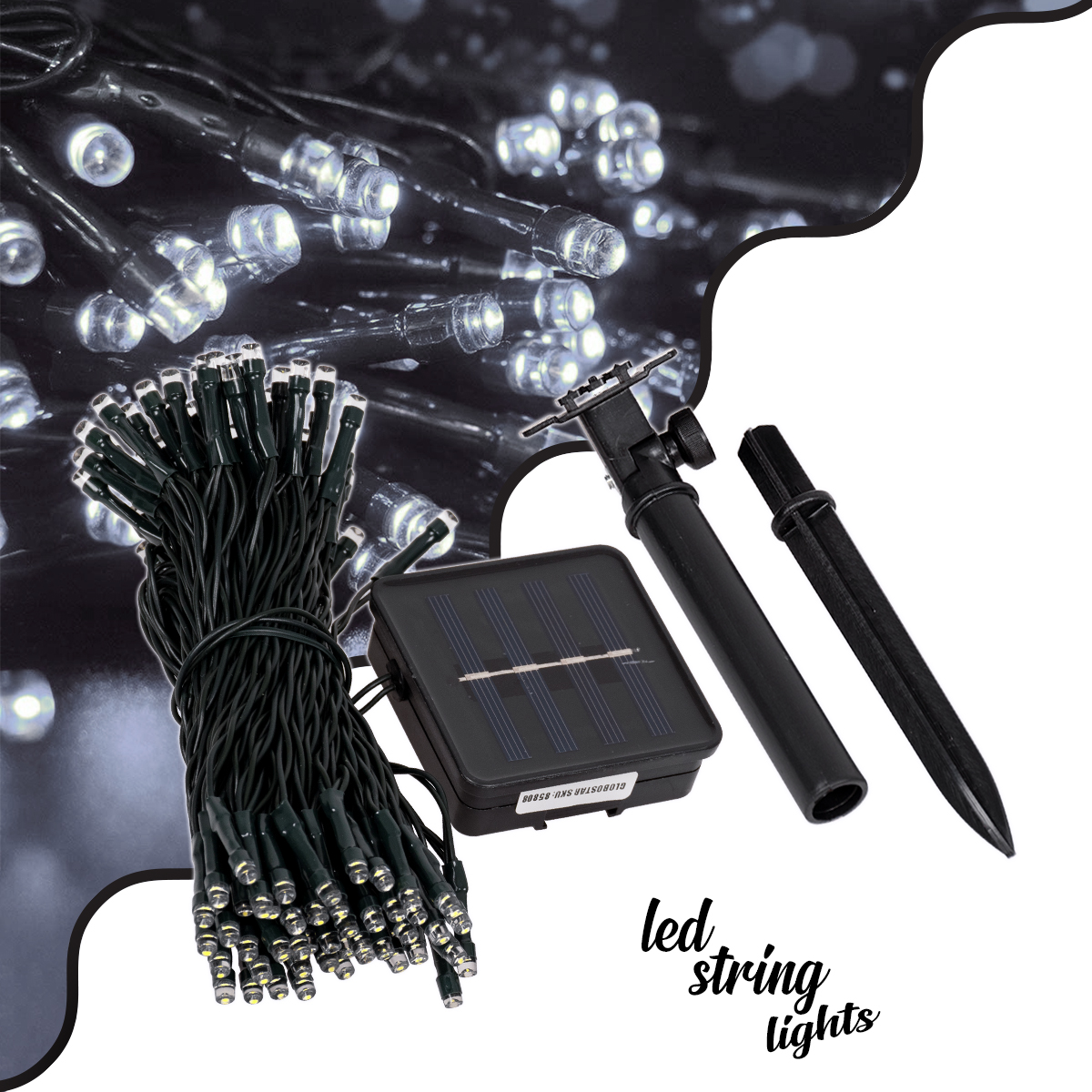 85808 Διακοσμητική Γιρλάντα 10 Μέτρων με Controller 8 Προγραμμάτων Φωτισμού – 100 LED 4W με Ενσωματωμένη Μπαταρία 600mAh – Φωτοβολταϊκό Πάνελ – Αισθητήρα Ημέρας-Νύχτας – Βάση Κήπου & Σκούρο Πράσινο Καλώδιο Αδιάβροχη IP65 Ψυχρό Λευκό 6000K Μ10m