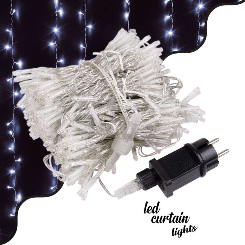 85831 Διακοσμητική Κουρτίνα 6 x 3 Μέτρα με Controller 8 Προγραμμάτων Εναλλαγών Φωτισμού – Επεκτεινόμενη 600 LED 6W AC 230V με Διάφανο Καλώδιο & Πρίζα Schuko Αδιάβροχη IP44 Ψυχρό Λευκό 6000K Μ6 x Υ3m