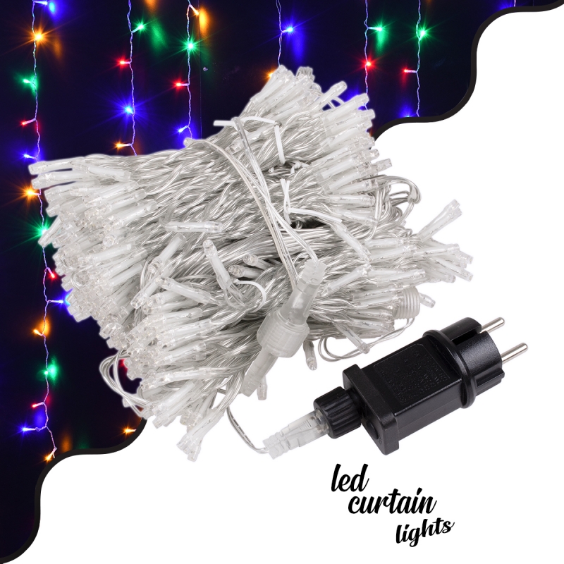 85832 Διακοσμητική Κουρτίνα 6 x 3 Μέτρα με Controller 8 Προγραμμάτων Φωτισμού – Επεκτεινόμενη 600 LED 6W AC 230V με Διάφανο Καλώδιο & Πρίζα Schuko Αδιάβροχη IP44 Πολύχρωμο RGB Μ6 x Υ3m