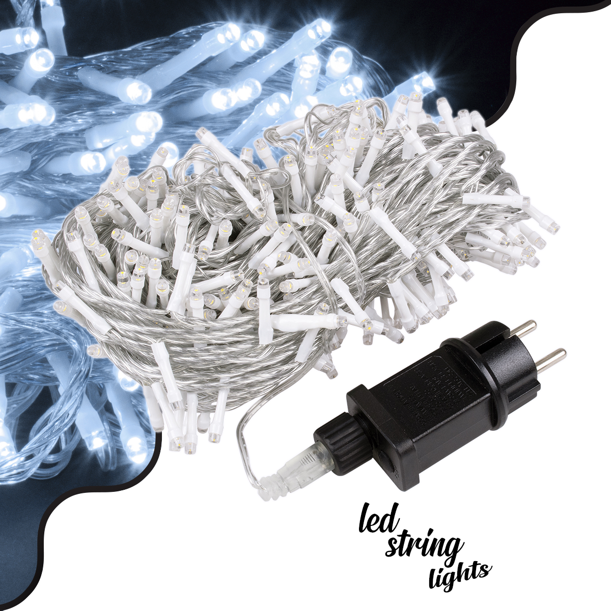 85840 Διακοσμητική Γιρλάντα 33 Μέτρα με Controller 8 Προγραμμάτων Εναλλαγών Φωτισμού – Επεκτεινόμενη 300 LED 3.6W AC 230V με Διάφανο Καλώδιο & Πρίζα Schuko Αδιάβροχη IP44 Ψυχρό Λευκό 6000K Μ33m