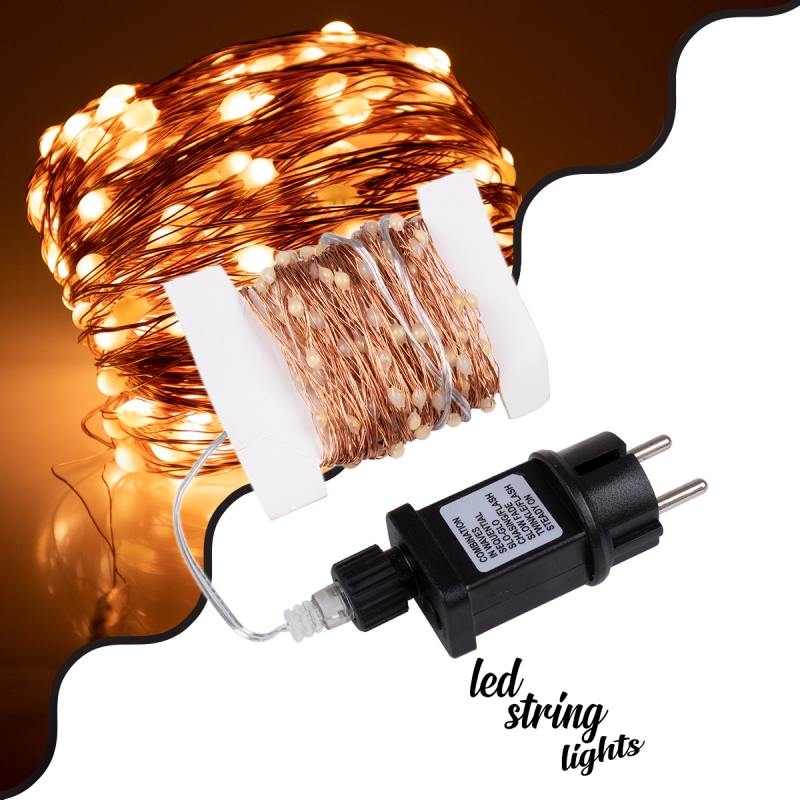 85842 Διακοσμητική Γιρλάντα 20 Μέτρα με Controller 8 Προγραμμάτων Εναλλαγών Φωτισμού – 200 LED 1.3W AC 230V με Χάλκινο Καλώδιο & Πρίζα Schuko Αδιάβροχη IP44 Θερμό Λευκό 3000K Μ20m