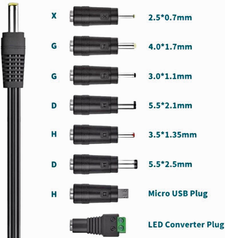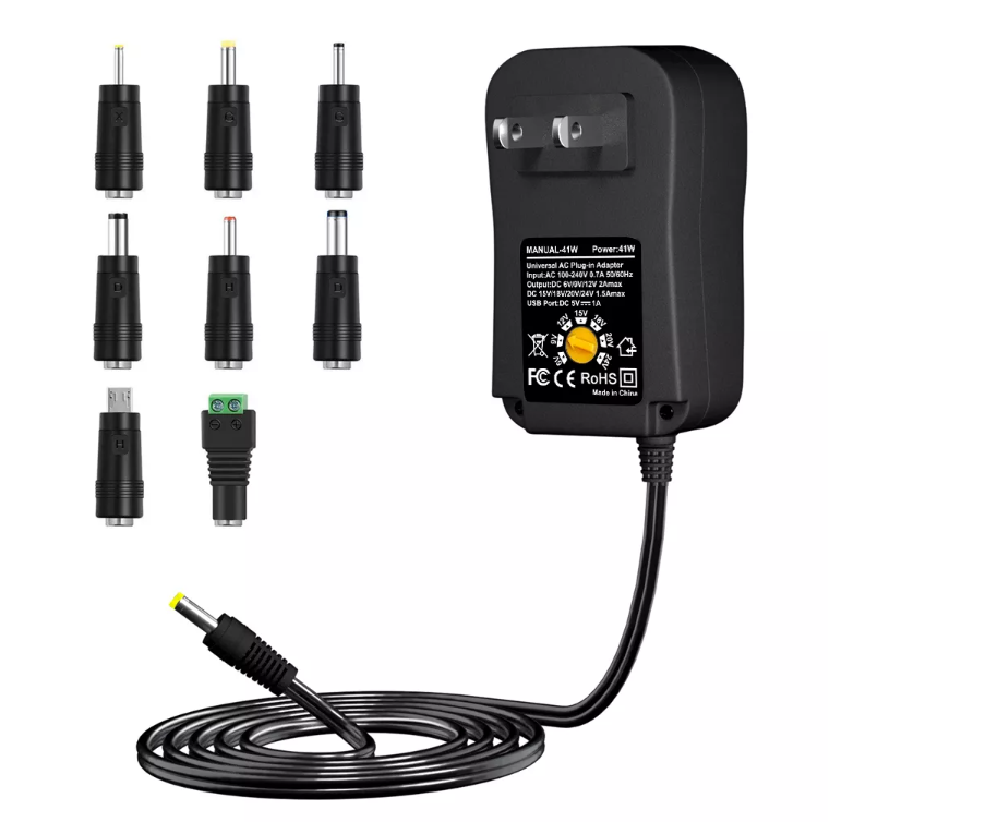Ονομασία προϊόντος Προσαρμογέας AC/DC γενικής χρήσης 41W Διεπαφές 2,5*0,7mm/4,0*1,7mm/3,0*1,1mm/5,5*2,1mm/3,5*1,35mm/5,5*2,5mm/Βύσμα Micro USB/Βύσμα μετατροπέα LED Μήκος καλωδίου DC 1,2μ Εγγύηση 12 μήνες Υλικό ABS+PC Τόπος καταγωγής Shenzhen, Κίνα Πιστοποίηση CE/FCC/RoHS Περιβάλλον εργασίας -10°C~+40°C 5%~90%RHΑποθηκευτικό περιβάλλον -20°C~+85°C 5%~95%RH Μέθοδος ψύξης Φυσική ψύξη Εφαρμογή Προσαρμογέας Όλα σε ένα Το τροφοδοτικό εναλλαγής προσαρμογέα γενικής χρήσης 41W έρχεται με 8 εναλλάξιμες άκρες, γεγονός που το καθιστά κατάλληλο για το 95% των οικιακών συσκευών AC/DC, όπως οικιακά ηλεκτρονικά 3V έως 12V, Tablet PC, Ζυγαριά, Δρομολογητές, ηχεία, λωρίδες LED, σύστημα κάμερας CCTV, κάμερα φόρτισης USB και ούτω καθεξής.
