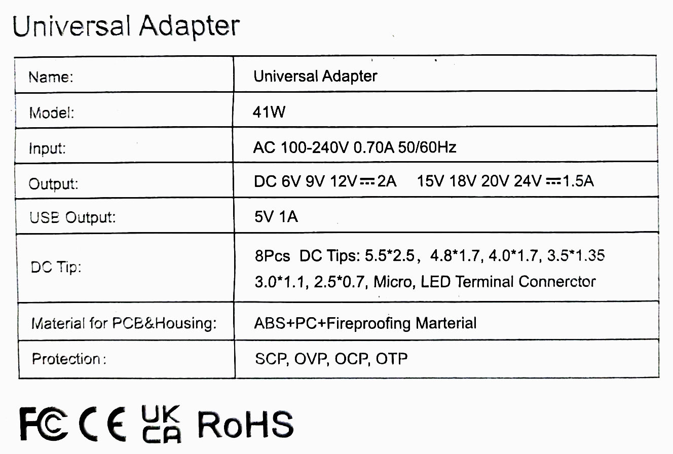ATC Τροφοδοτικό 41W Switching με 8 κεφαλές 6V-24V