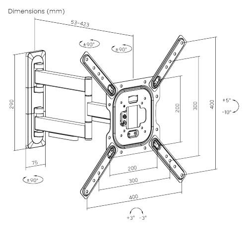 ΠΡΟΔΙΑΓΡΑΦΕΣΚατηγορία προϊόντος: Βάση τοίχου τηλεόρασης Full-motionΚατάταξη: ΤυπικήΥλικό: Χάλυβας, ΠλαστικόΠάχος μεταλλικού φύλλου: Πάνελ VESA THK=1,8 χιλιοστά φύλλο ψυχρής έλασης, Πλάκα τοίχου THK=2,5 χιλιοστά φύλλο παστοποίησης (Πάνελ VESA THK=0,071″”, φύλλο ψυχρής έλασης, Πλάκα τοίχου THK=0,098″”Μέγεθος σωλήνα: 40x20x1,5mm (1,6″x0,79″x0,059″”)Φινίρισμα Επιφανείας: Επικάλυψη σε σκόνηΧρώμα: Μαύρο λεπτής υφήςΔιαστάσεις: 423x445x445mm(16,7″x17,5″”x17,5″”)Μέγεθος οθόνης προσαρμογής: 23″”-65″”Fit Curved TV: ΝαιΜοτίβο οπής τοποθέτησης: Μόνο VESAΣυμβατό με VESA: 75×75,100×100,200×100,200×200,300×200,400×200,300×300,400×300,400×400Μέγ. Τρύπα στερέωσης: 400×400Βάρος Χωρητικότητα: 35 κιλά (77 λίβρες)Δοκιμασμένη αντοχή: 4 φορές ΕγκρίθηκεΠροφίλ: 53~423mm(2,1″~16,7″”)Εύρος κλίσης: +5°-10°Εύρος περιστροφής: +90°~-90°Επίπεδο οθόνης: +3°~-3°Ελεύθερη κλίση της οθόνης: ΝαιΤοποθέτηση: Συμπαγής τοίχος, Μονό StudΤύπος πίνακα: Αποσπώμενο πάνελΤύπος πλάκας τοίχου: Σταθερή πλάκα τοίχουΔιαχείριση καλωδίων: ΝαιΑντικλεπτική: ΌχιΕπίπεδο φούσκας: ΌχιΣυσκευασία κιτ αξεσουάρ: Normal/Ziplock Polybag,Compartment PolybagΠεριλαμβάνεται εγχειρίδιο οδηγιών: ΝαιΚιτ βιδών Samsung: ΌχιΚατά Λειτουργία: Πλήρης κίνηση