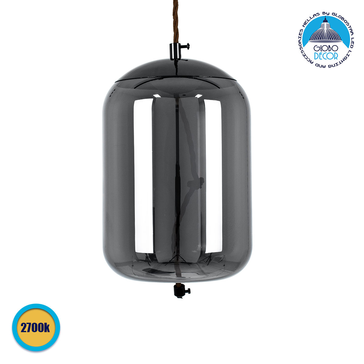 GLOBOSTAR® ΑΧΤΟΝ 00753 Μοντέρνο Κρεμαστό Φωτιστικό Οροφής LED 7W 500lm 180° AC 220-240V IP20 Θερμό Λευκό 2700K – Sanan SMD Chip – Μαύρο & Μαύρο Φιμέ – Μ18 x Π18 x Υ18cm – 2 Χρόνια Εγγύηση