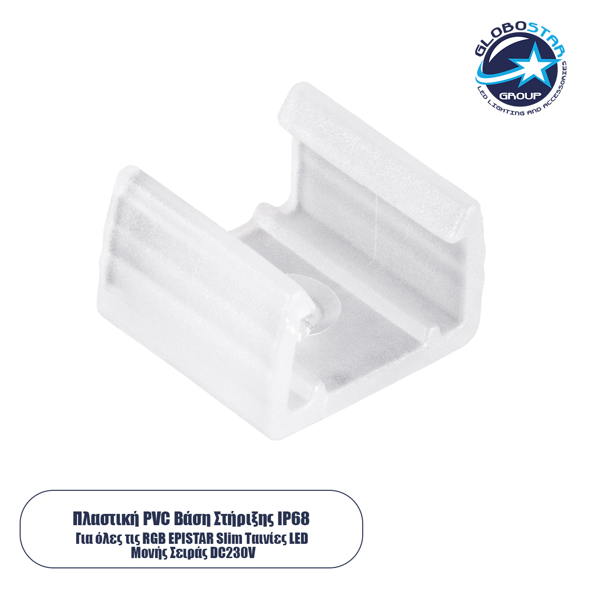GloboStar® 70529 Πλαστική PVC Βάση Στήριξης για Όλες τις Πολύχρωμες RGB EPISTAR Slim Ταινίες LED Μονής Σειράς DC 230V IP68 – Μ1.5 x Π1.6 x Υ1.1cm