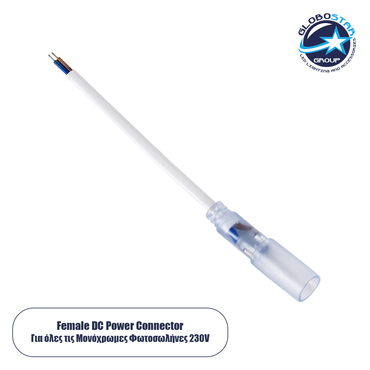GloboStar® 70653 Καλώδιο Τροφοδοσίας Ατερμάτιστο για Μονόχρωμο Φωτοσωλήνα LED 360° Degree DC 230V 2 Pin Αδιάβροχο IP68