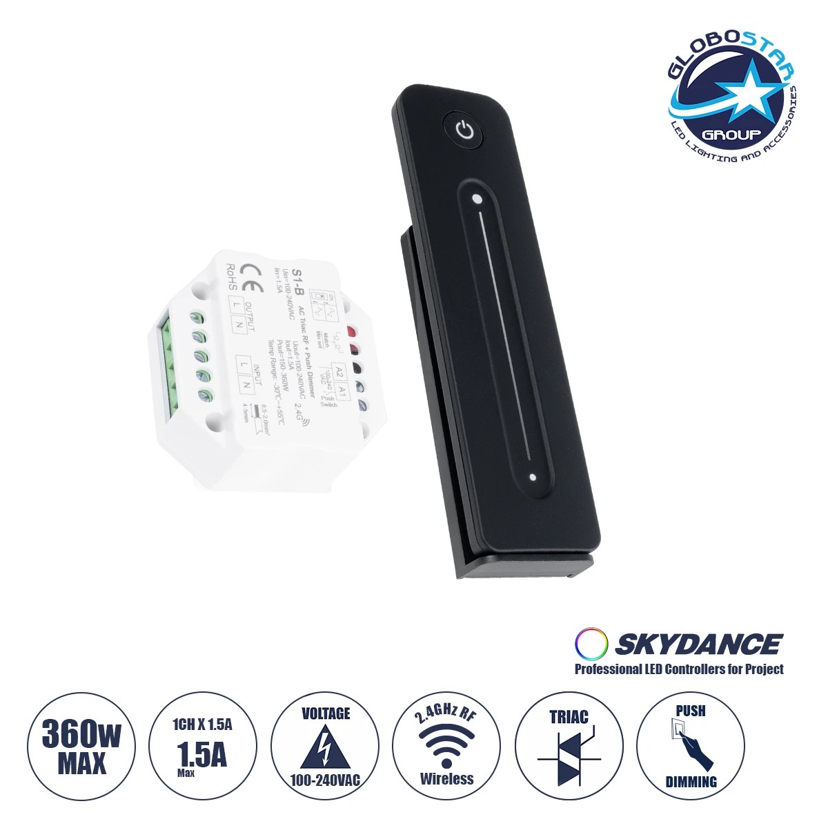 GloboStar® 73124 S1-B+R11 SKYDANCE ΣΕΤ Dimmer & Ασύρματο Χειριστήριο Αφής 1 Group RF 2.4Ghz 1.5A Max AC100-240V (360W) – DC 3V IP20 – 5 Χρόνια Εγγύηση