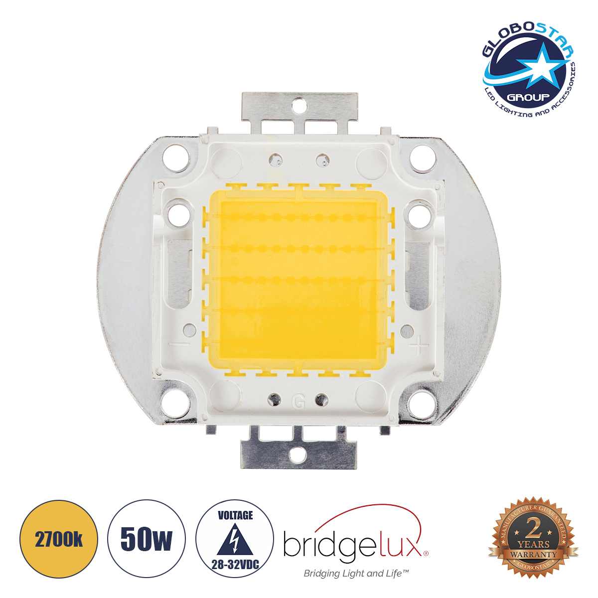 GloboStar® 73765 Υψηλής Ισχύος LED COB BRIDGELUX 50W 4000lm DC 28-32V – Μ5.6 x Π5.2 x Υ0.6cm – Θερμό Λευκό 2700K – 2 Χρόνια Εγγύηση