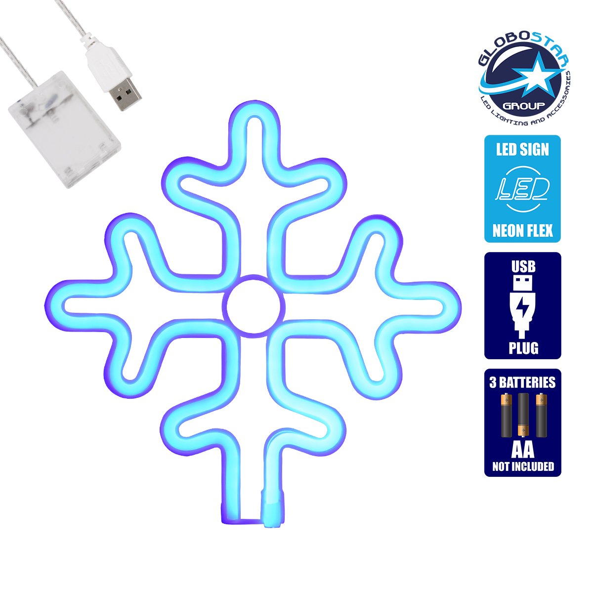 GloboStar® 78580 Φωτιστικό Ταμπέλα Φωτεινή Επιγραφή NEON LED Σήμανσης SNOWFLAKE 5W με Καλώδιο Τροφοδοσίας USB – Μπαταρίας 3xAAA (Δεν Περιλαμβάνονται) – Γαλάζιο