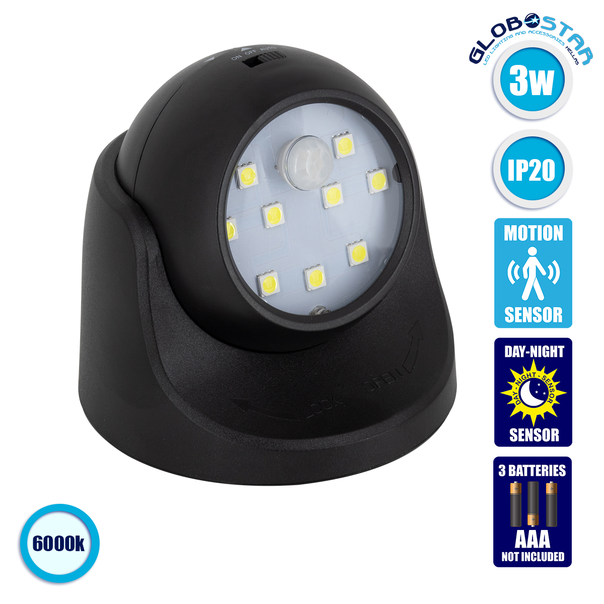 - Τροφοδοσία Τάσης: 3 x Μπαταρίες AA (Δεν Συμπεριλαμβάνεται)
