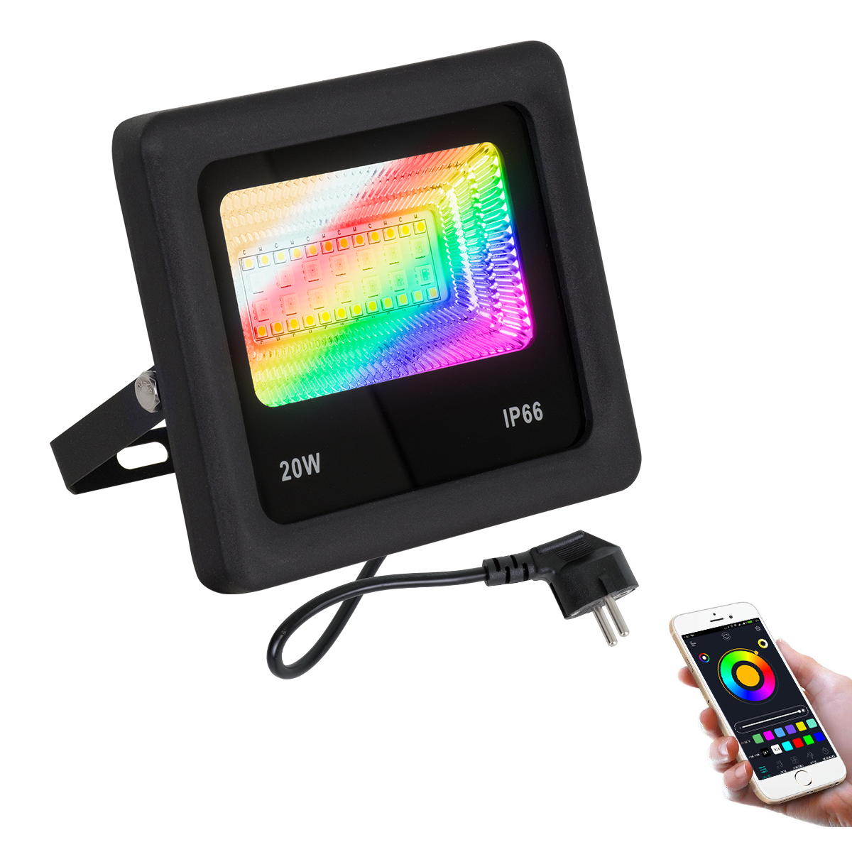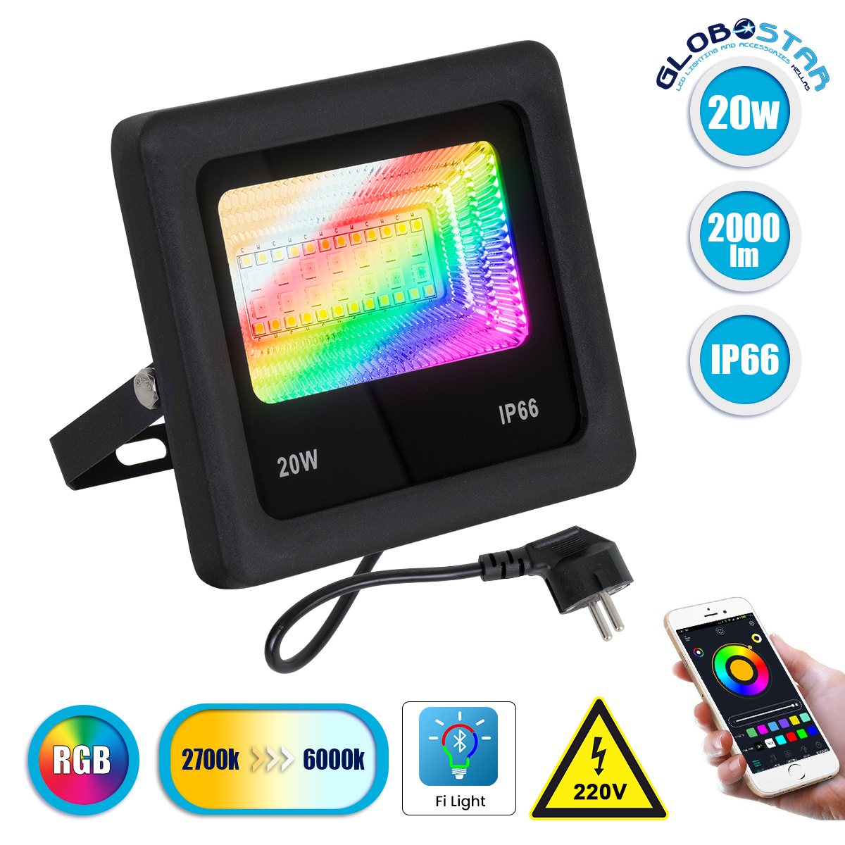 GloboStar® 85815 Προβολέας Εξωτερικός LED SMD 5050 & 2835 20W 2000lm 180° AC 230V με Ασύρματο Wireless Bluetooth Αδιάβροχος IP66 Πολύχρωμος RGB+CCT Θερμό Λευκό 3000K – Λευκό Ημέρας 4500K – Ψυχρό Λευκό 6000K