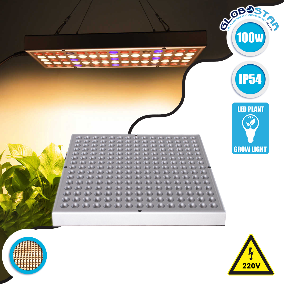 GloboStar® 85955 Grow Light Panel Hydro Spectrum LED Φωτιστικό Ανάπτυξης Φυτών Υδροπονικού Θερμοκηπίου SMD 2835 100W 160° AC230V IP54 Εσωτερικού Χώρου για Κάλυψη Επιφάνειας 1m x 1m