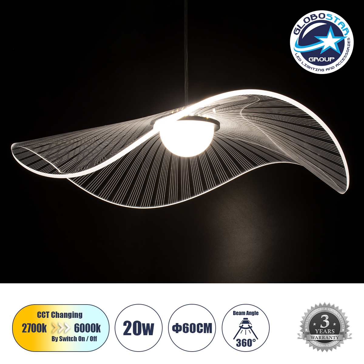 GLOBOSTAR® ACRYLICA 60975 Μοντέρνο Κρεμαστό Φωτιστικό Οροφής LED 20W 2240lm 360° AC 220-240V IP20 Ρυθμιζόμενο Λευκό CCT με On/Off 2700K/4500K/6000K – Lumileds SMD Chip – Διάφανο & Μαύρο Ματ – Μ60 x Π60 x Υ15cm – 3 Χρόνια Εγγύηση