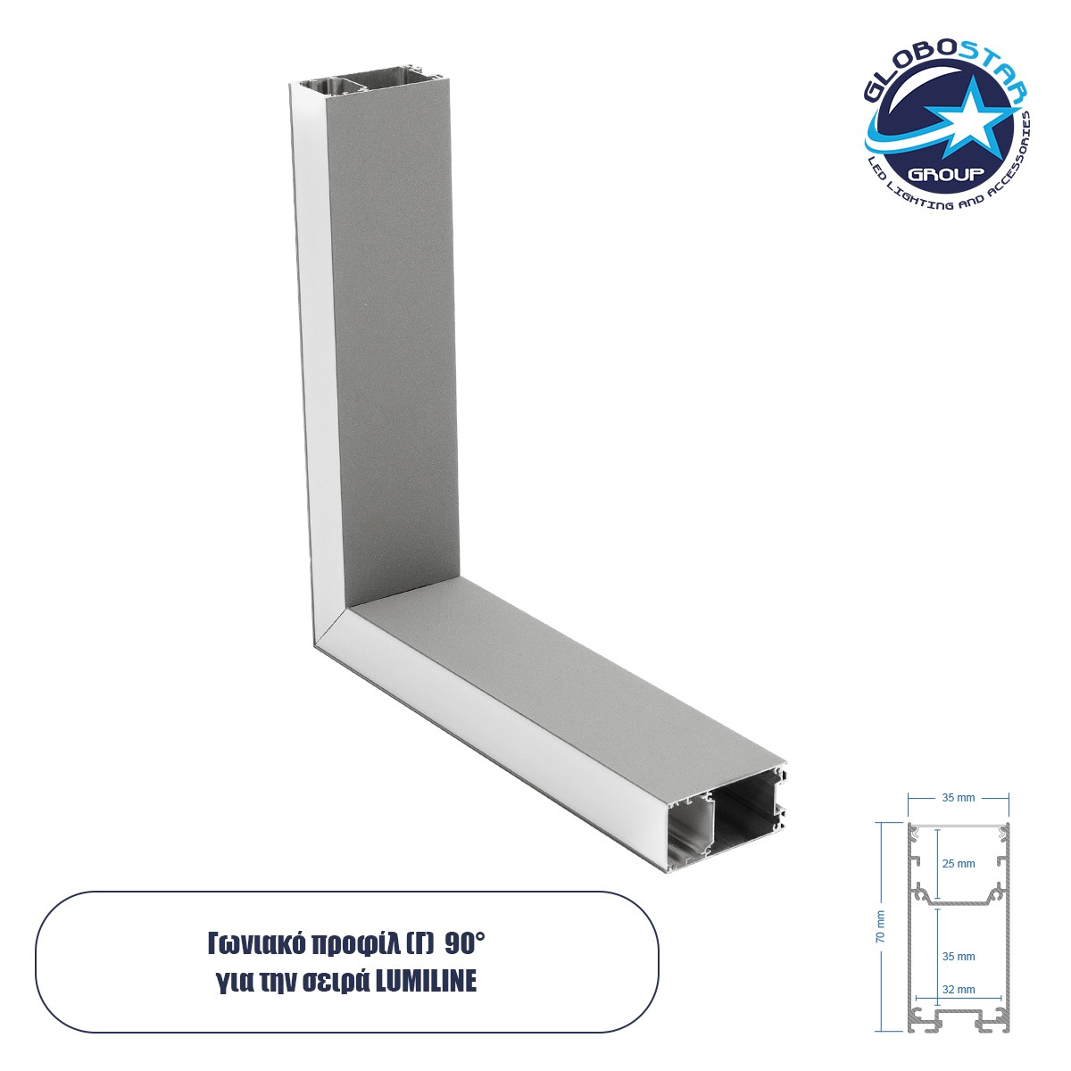 GLOBOSTAR® ALP-CORNER-SIDE90 LUMILINE 61768 Επιφανειακό / Κρεμαστό Προφίλ Αλουμινίου Γωνία με Λευκό Γαλακτερό Πατητό Κάλυμμα για Ταινίες LED IP20 – Γκρι Ανθρακί Ματ – Μ30 x Π3.5 x Υ7cm