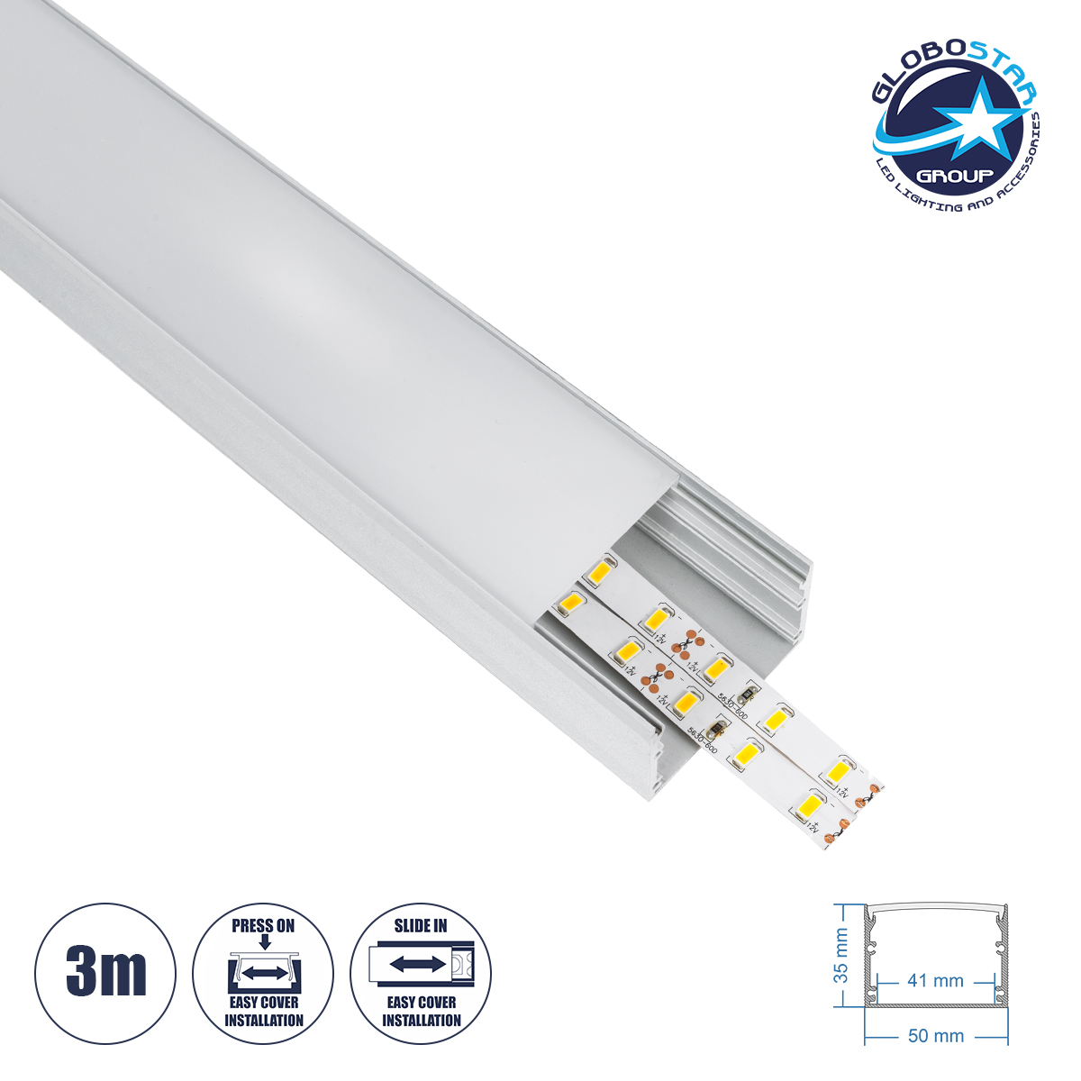 GLOBOSTAR® ALP-LINEAR INGROUND 70860-3M Ενδοδαπέδιο Προφίλ Αλουμινίου Ειδικό για Χωνευτή Χρήση σε Πεζοδρόμια & Δρόμους με Λευκό Γαλακτερό Πατητό Κάλυμμα Υψηλής Αντοχής & Ανθεκτικότητας σε Βάρος για Ταινίες LED IP65 – Ασημί & Λευκό – Μ300 x Π5 x Υ3.5cm