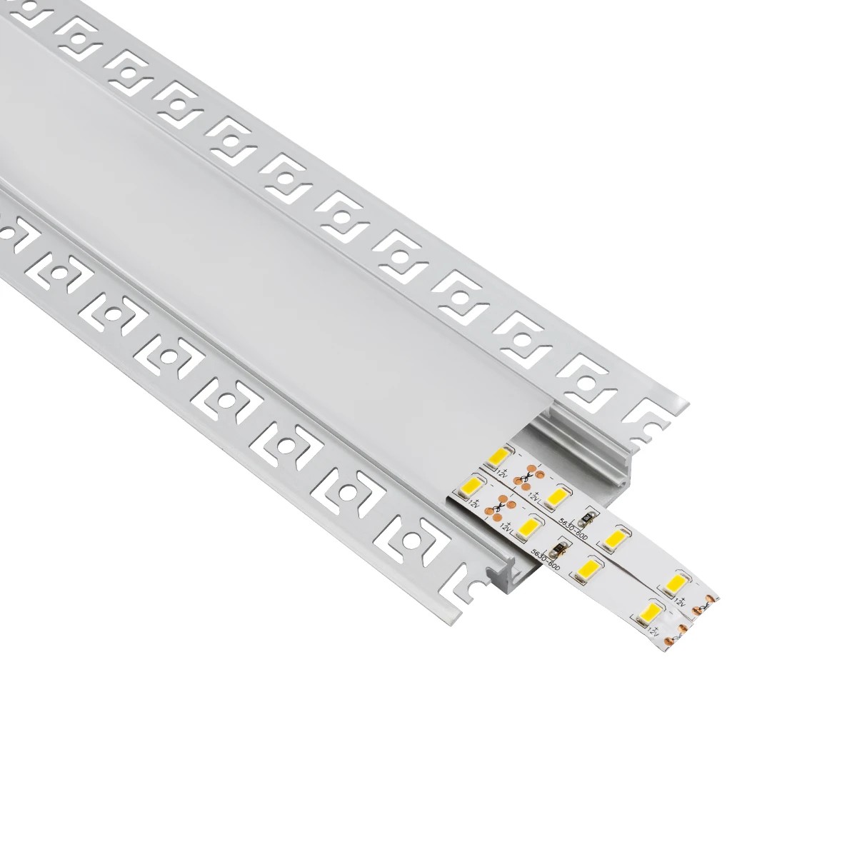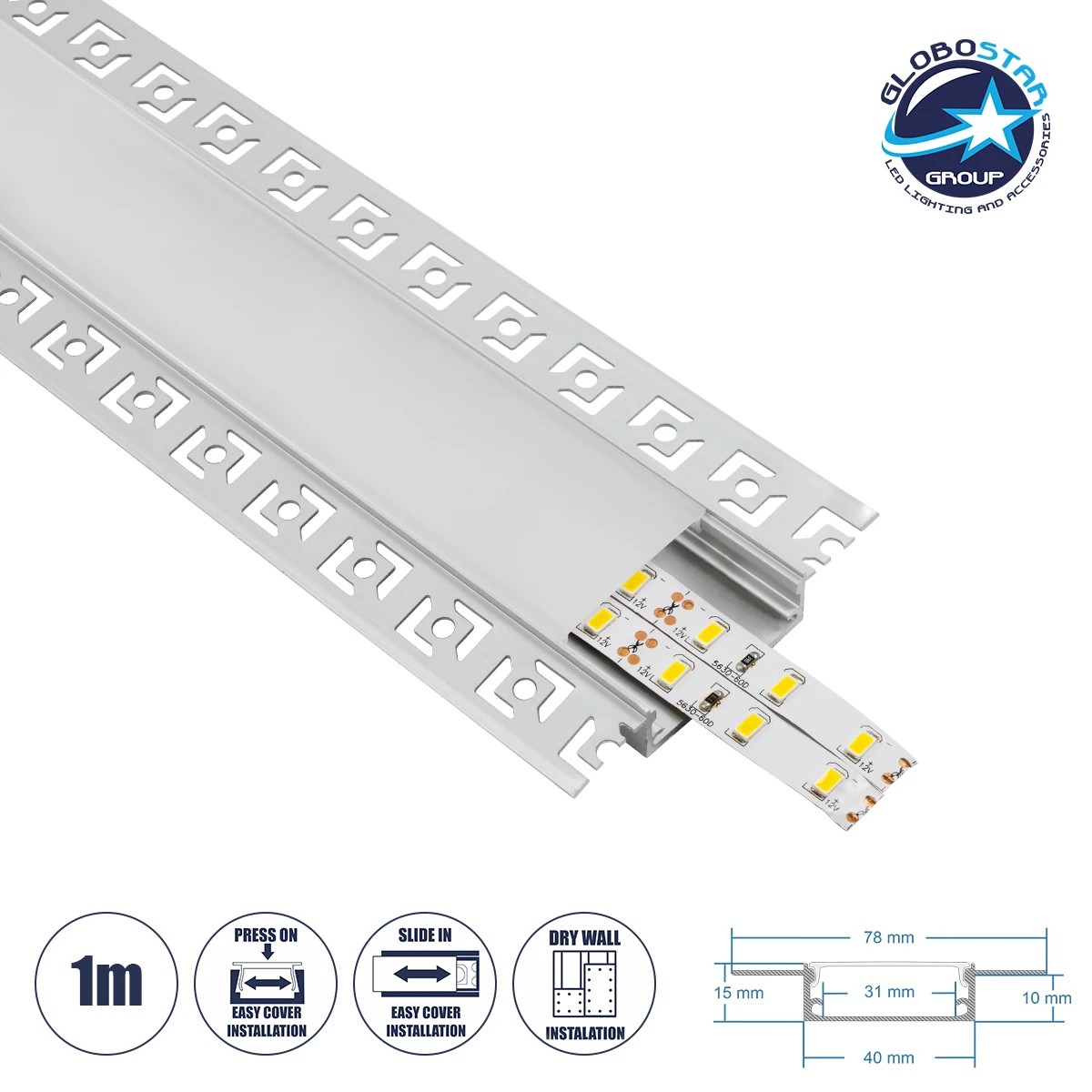 GLOBOSTAR® ALP-PLASTERIN GYPSO 70861-1M Χωνευτό Προφίλ Αλουμινίου Ειδικό για Γυψοσανίδα με Λευκό Γαλακτερό Πατητό Κάλυμμα για Ταινίες LED IP20 – Ασημί & Λευκό – Μ100 x Π7.8 x Υ1.4cm