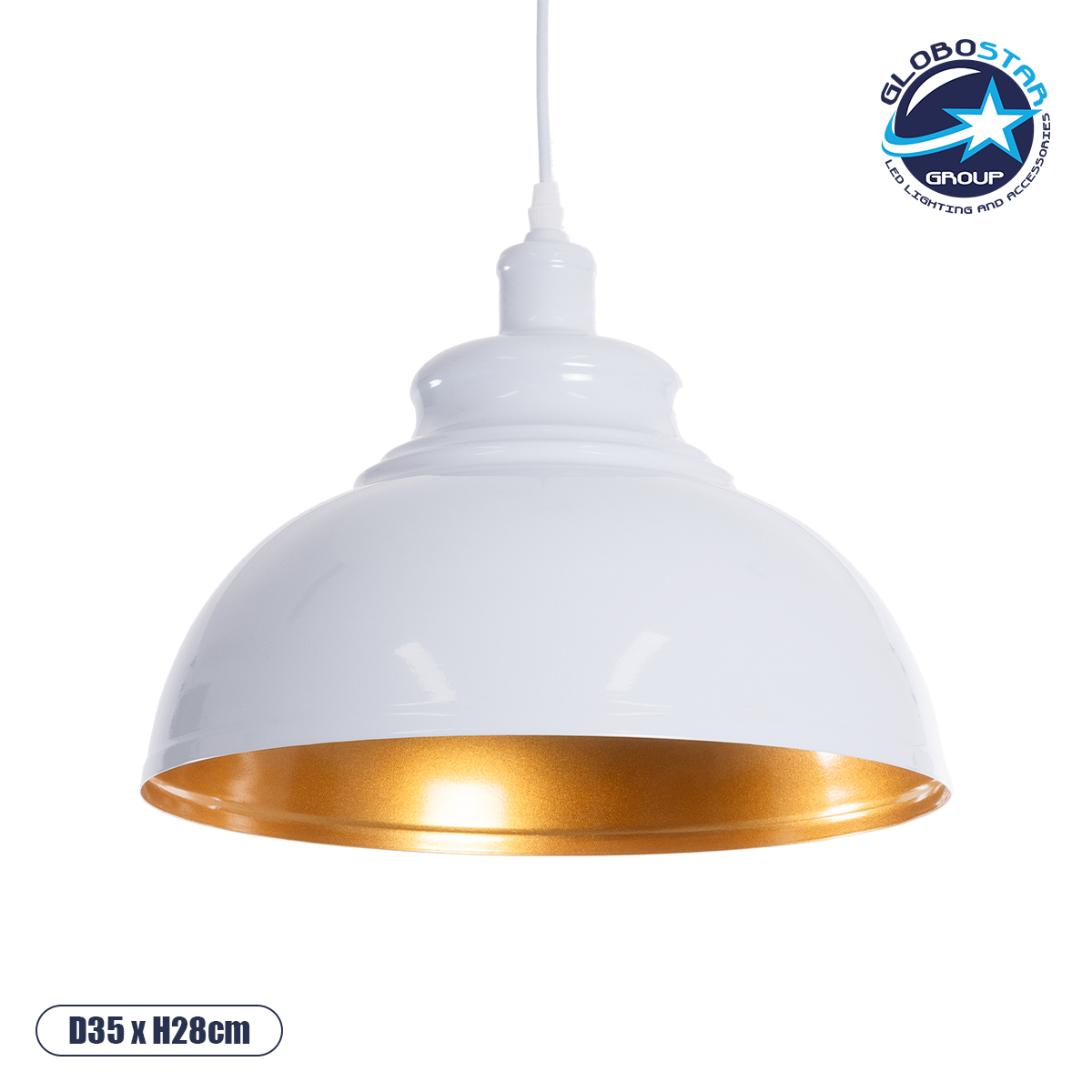 GLOBOSTAR® ANDY 00999 Μοντέρνο Κρεμαστό Φωτιστικό Οροφής με Ντουί 1 x E27 AC 220-240V IP20 – Λευκό & Χρυσό – Μ35 x Π35 x Υ28cm