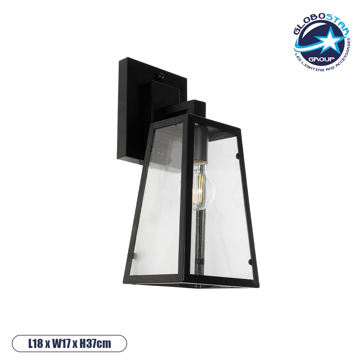 GLOBOSTAR® ASETYLIN 01032 Vintage Φωτιστικό Τοίχου – Απλίκα με Ντουί 1 x E27 AC 220-240V IP20 – Μαύρο – Μ18 x Π17 x Υ37cm