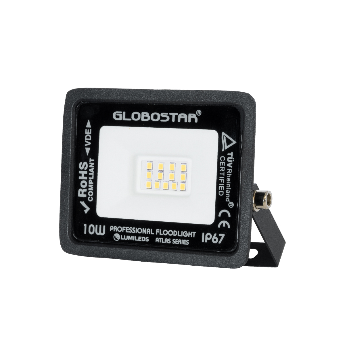 GLOBOSTAR® ATLAS 61517 Προβολέας LED 10W 1150lm 120° AC 220-240V Αδιάβροχο IP67 Θερμό Λευκό 2700K – Lumileds SMD Chip – TÜV Rheinland Certified – Μαύρο Ματ – Μ10 x Π2 x Υ8cm – 5 Χρόνια Εγγύηση