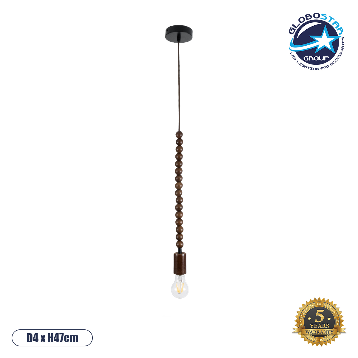 GLOBOSTAR® BEADS 00694 Vintage Κρεμαστό Φωτιστικό Οροφής με Ντουί 1 x E27 AC 220-240V IP20 – Καφέ – Μ4 x Π4 x Υ47cm