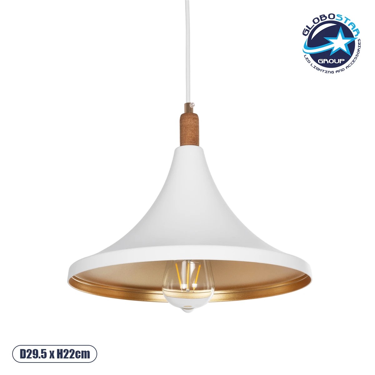 GLOBOSTAR® BELFRY 203-0076 Μοντέρνο Κρεμαστό Φωτιστικό Οροφής με Ντουί 1 x E27 AC 220-240V IP20 – Λεύκο & Χρυσό – Μ29.5 x Π29.5 x Υ22cm