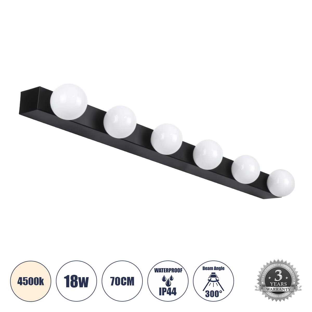 GLOBOSTAR® BELLA 60452 Μοντέρνο Φωτιστικό Τοίχου – Απλίκα Καθρέπτη Μπάνιου LED 18W 2052lm 300° AC 220-240V IP44 Φυσικό Λευκό 4500K – Bridgelux COB Chip & TÜV SÜD Driver – Μαύρο Ματ & Λευκό – Μ70 x Π11 x Υ6cm – 3 Χρόνια Εγγύηση